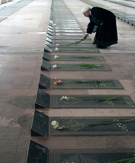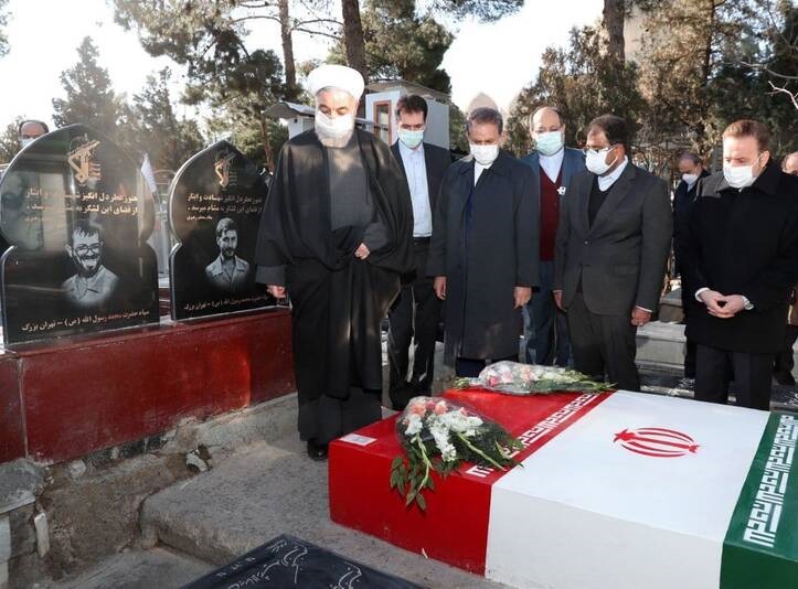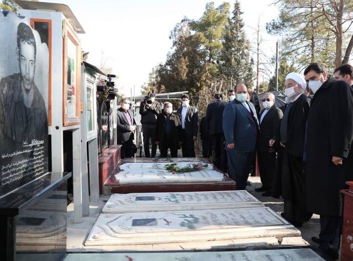عکس نثار گل توسط دکتر روحانی در گلزار شهدا