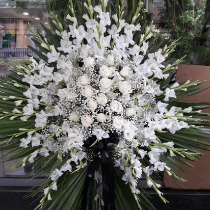 در این تاج گل ترحیم باشکوه و زیبای گل فروشی رضوان از گل های گلایل به همراه آنتوریوم قرمز و لیلیوم به صورت کاملا حرفه ای و هنرمندانه استفاده شده است و جلوه ای متفاوت دارد.