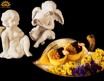۱۴ – خرید شیرینی ترحیم , حلوا تزیین شده و خرما مغزدار مجلسی تزیین شده : این موارد در دیس های چینی شکیل و یک شکل چیدمان می شوند و روی میز ترحیم قرار می گیرند. خرمای استفاده شده در مراسم مغزدار و در مدل های مختلفی وجود دارد به عنوان مثال می توان تزیین آن را با خمیر فوندانت انجام داد.