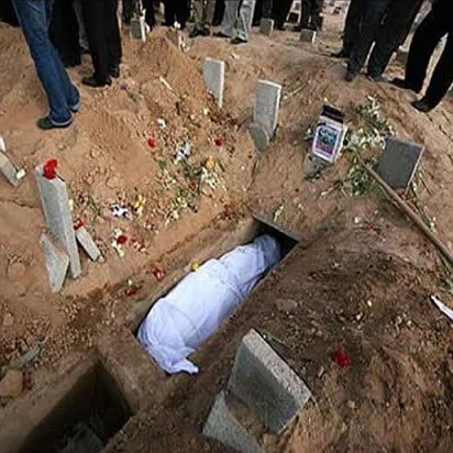 آمادهسازی میت: پس از غسل، کفن و نماز میت، جسد را در قبر قرار میدهند.
